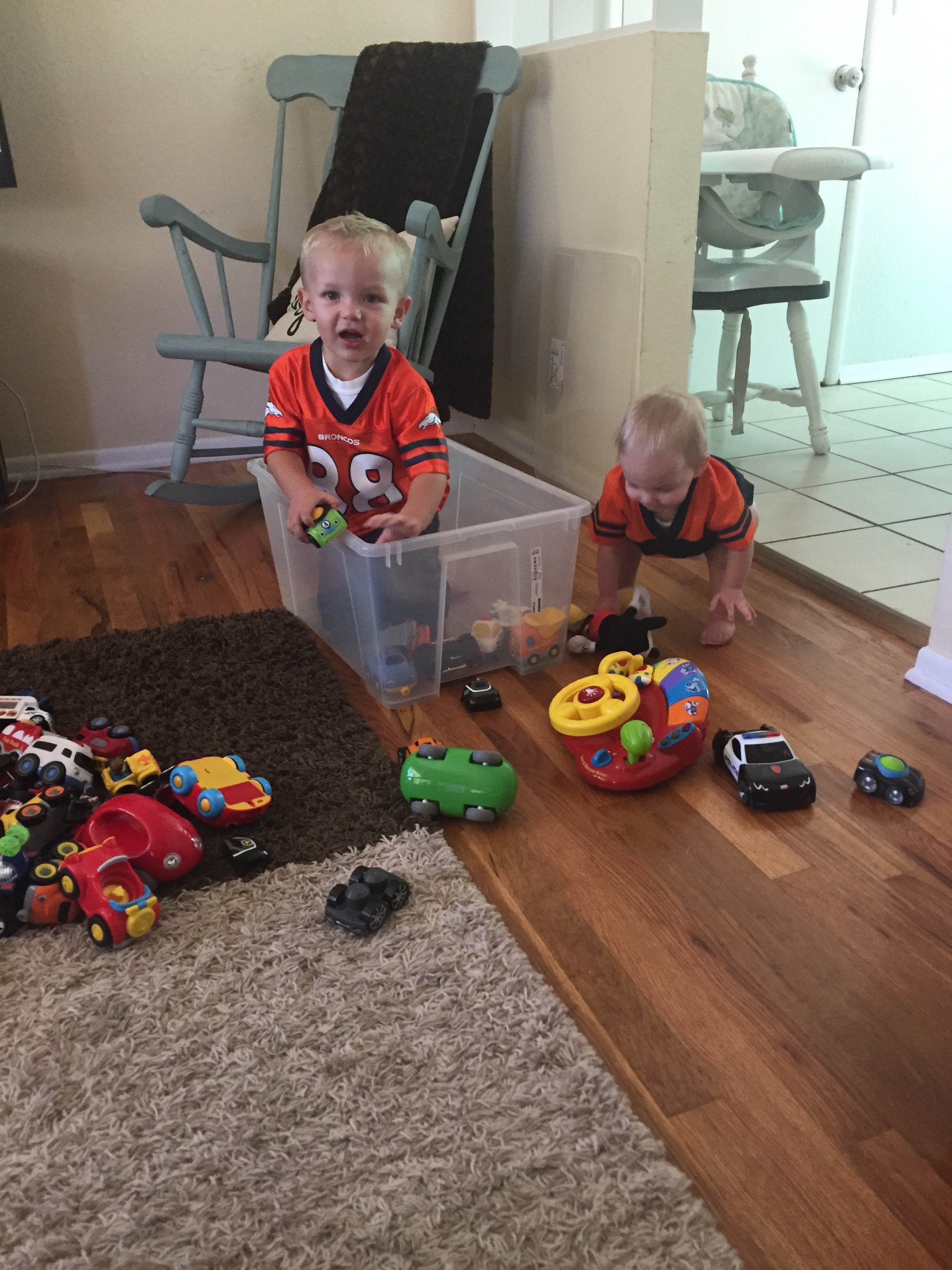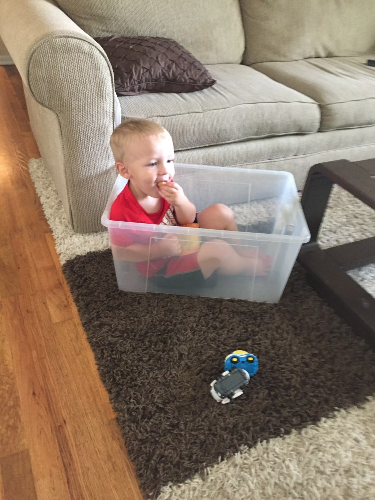 I’m pretty sure they weren’t quite as convinced on how awesome this was and Caleb actually prefers to play with the tubs this way…