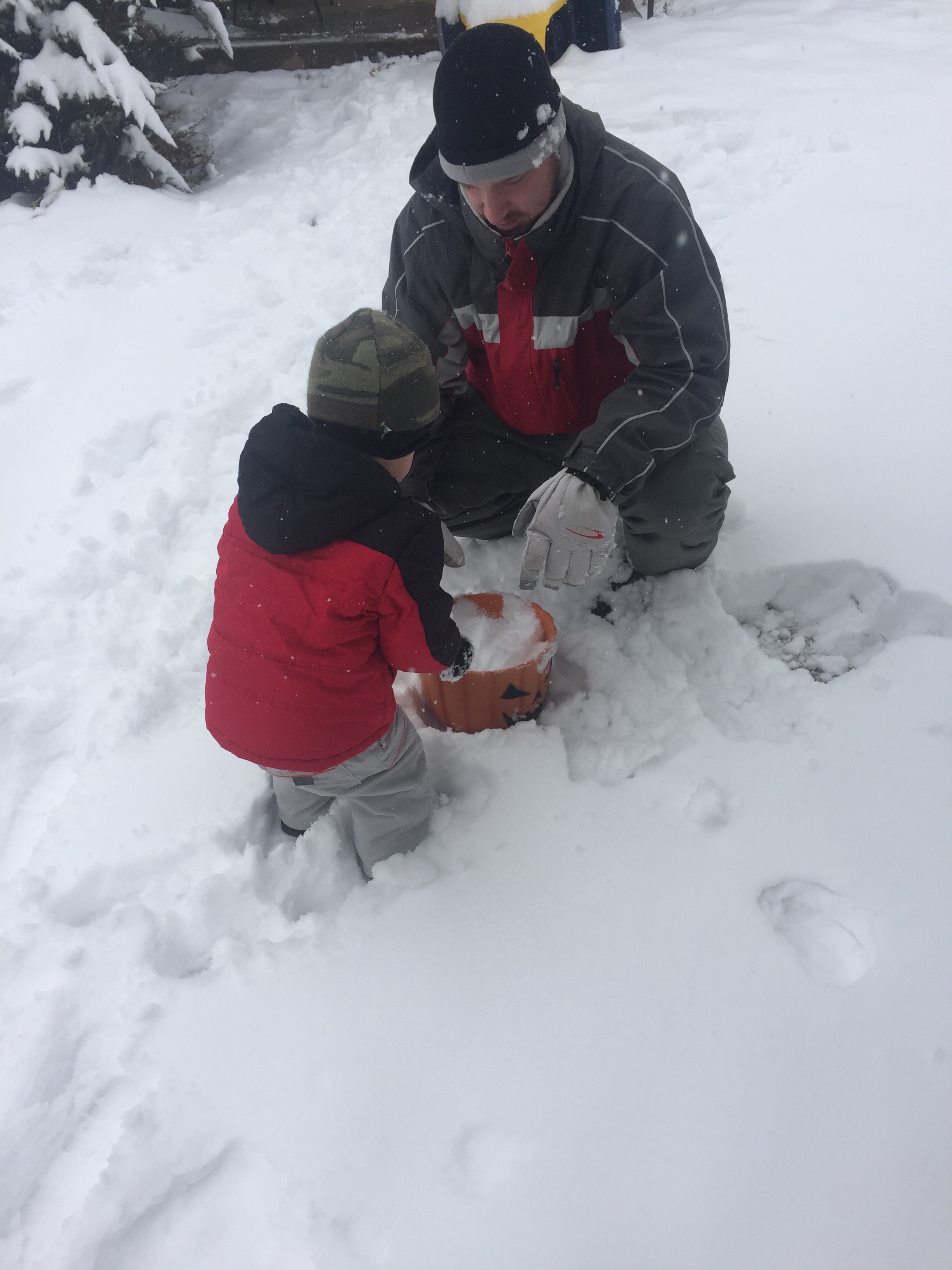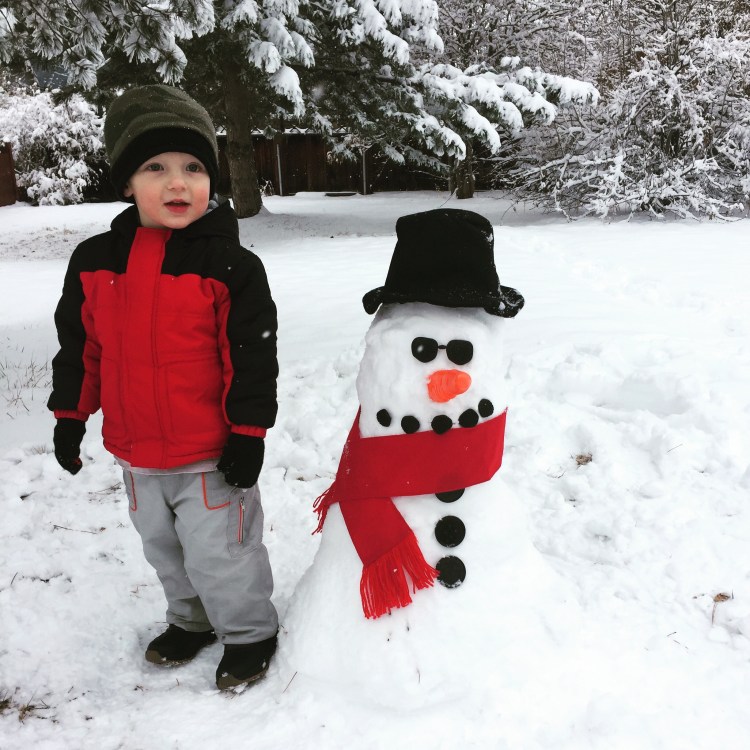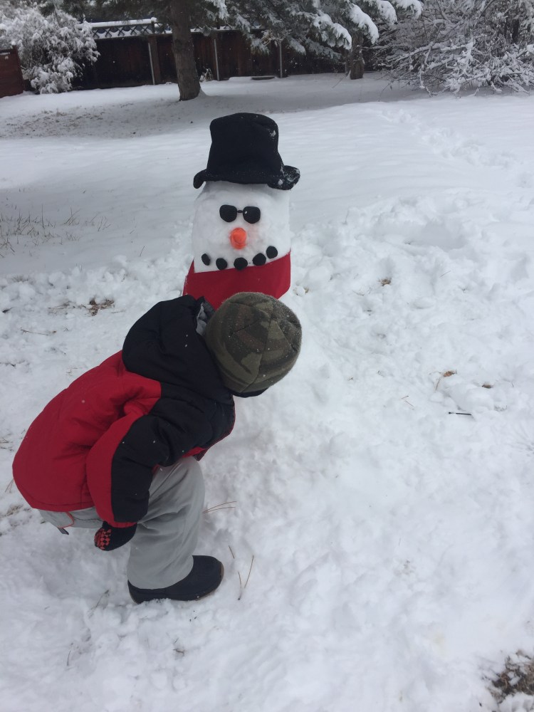 We also made our (meaning me and Caleb’s) very first snowman ever!