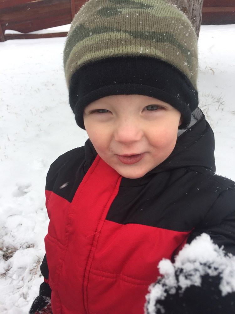 The little man LOVES eating snow.