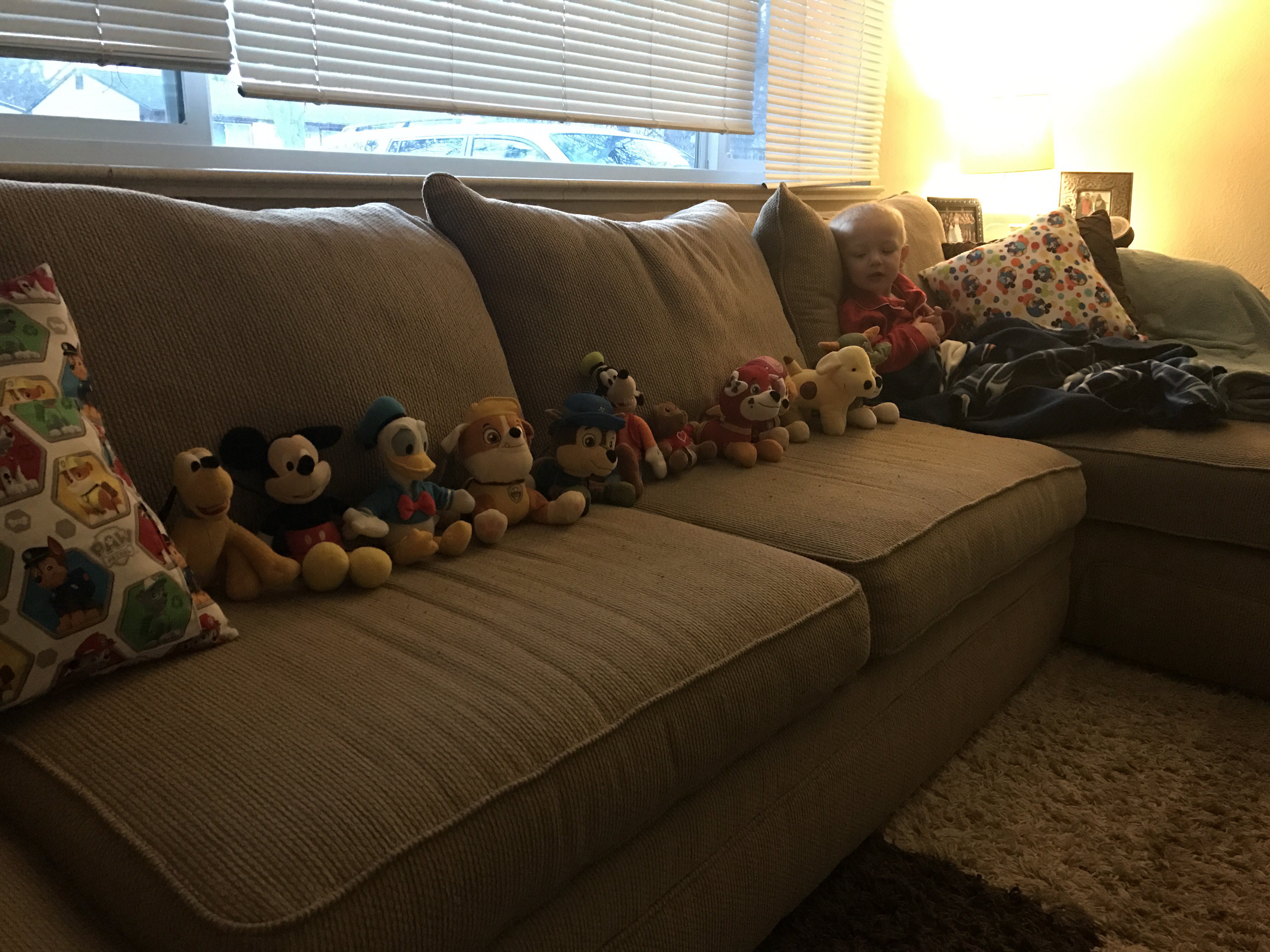 Because this little guy wakes up! This is his ‘It’s too bright’ face. But then he remembered that he put all of his friends to sleep on the floor so he instantly inquires if they are awake yet.