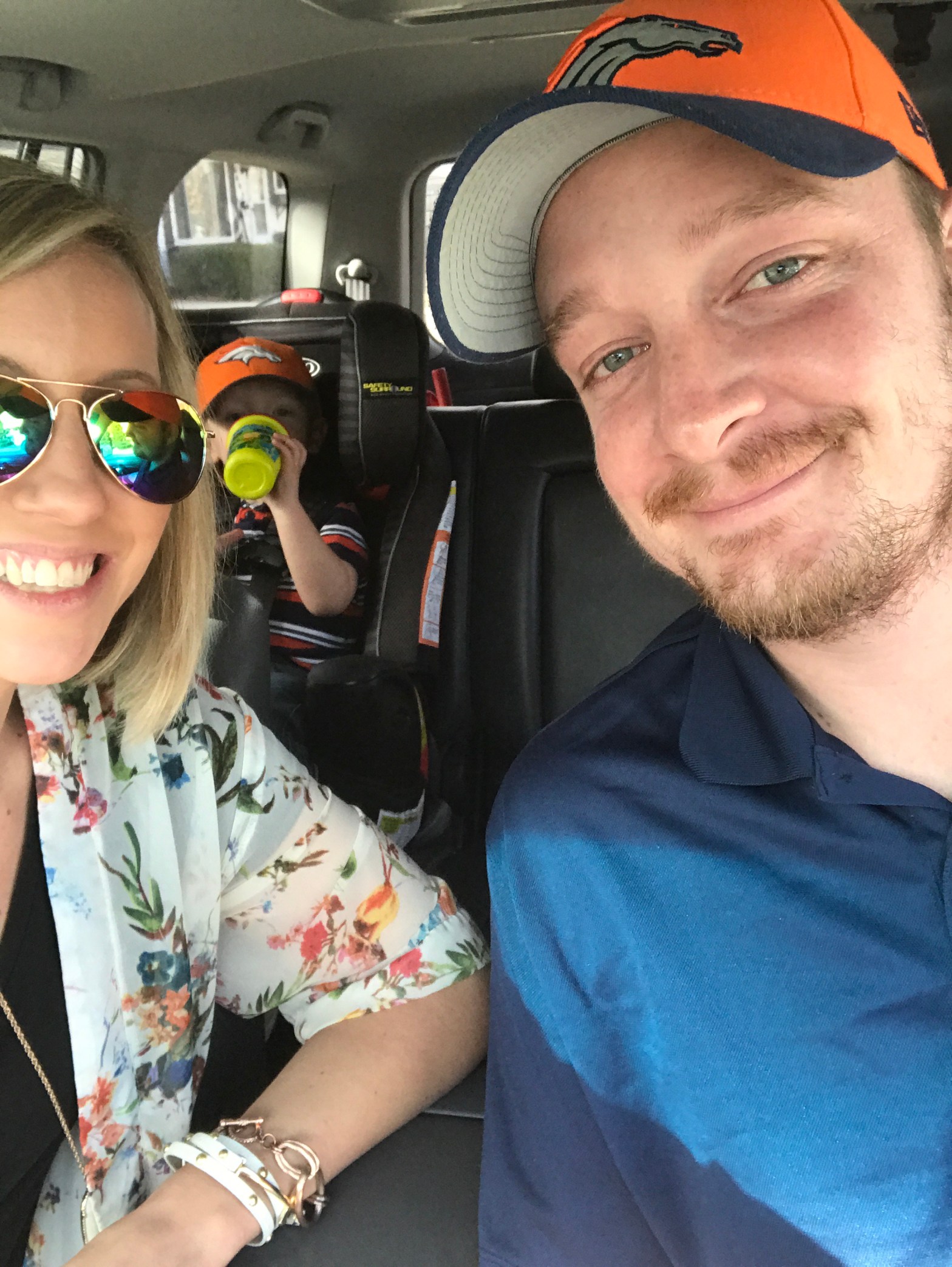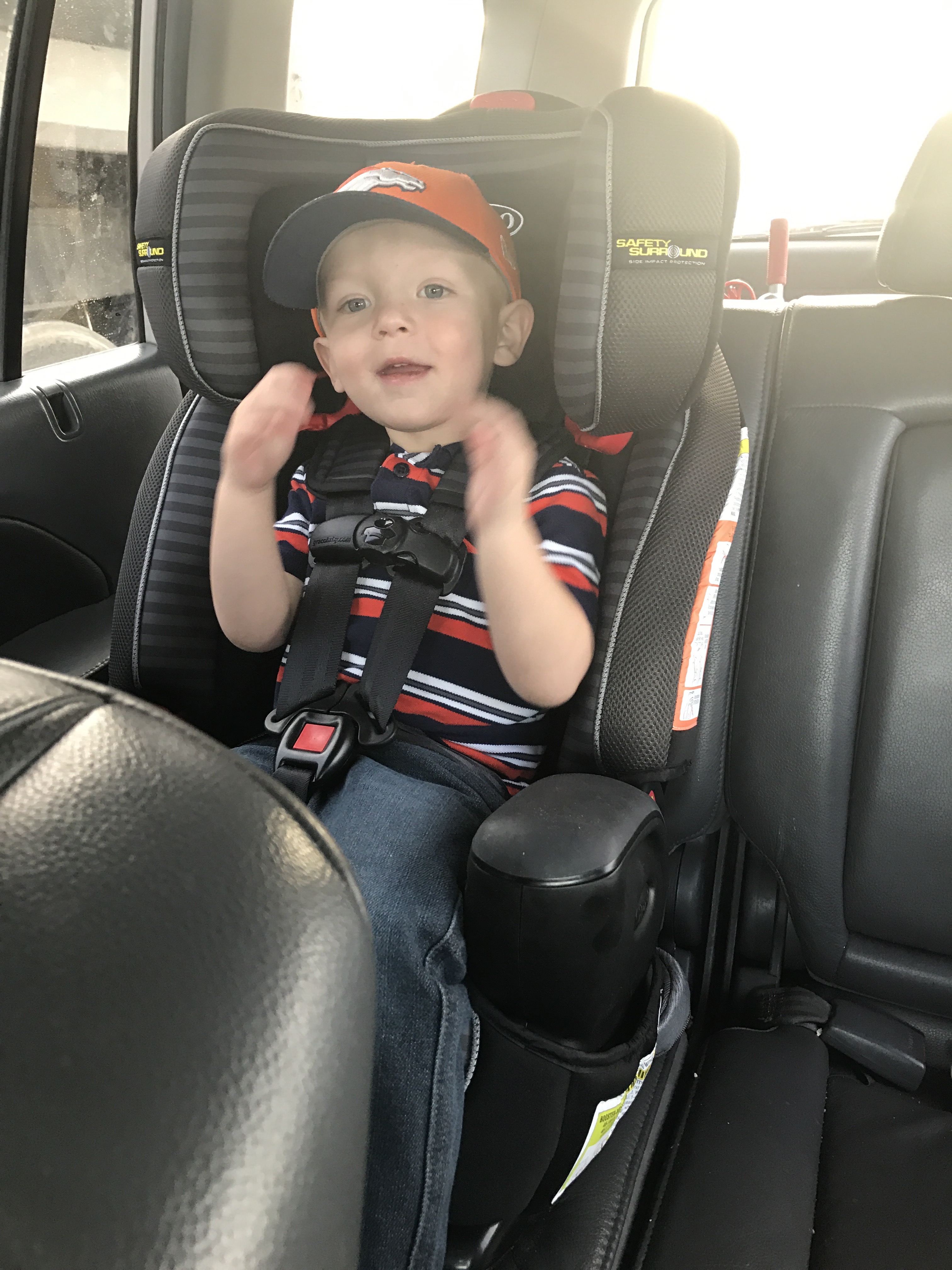 And we are off! We are headed to JoJo’s school to go visit her classroom and of course her too. She’s an elementary music teacher which means she has LOTS of fun instruments for Caleb to play with. Needless to say, the guy in the backseat is pretty excited!