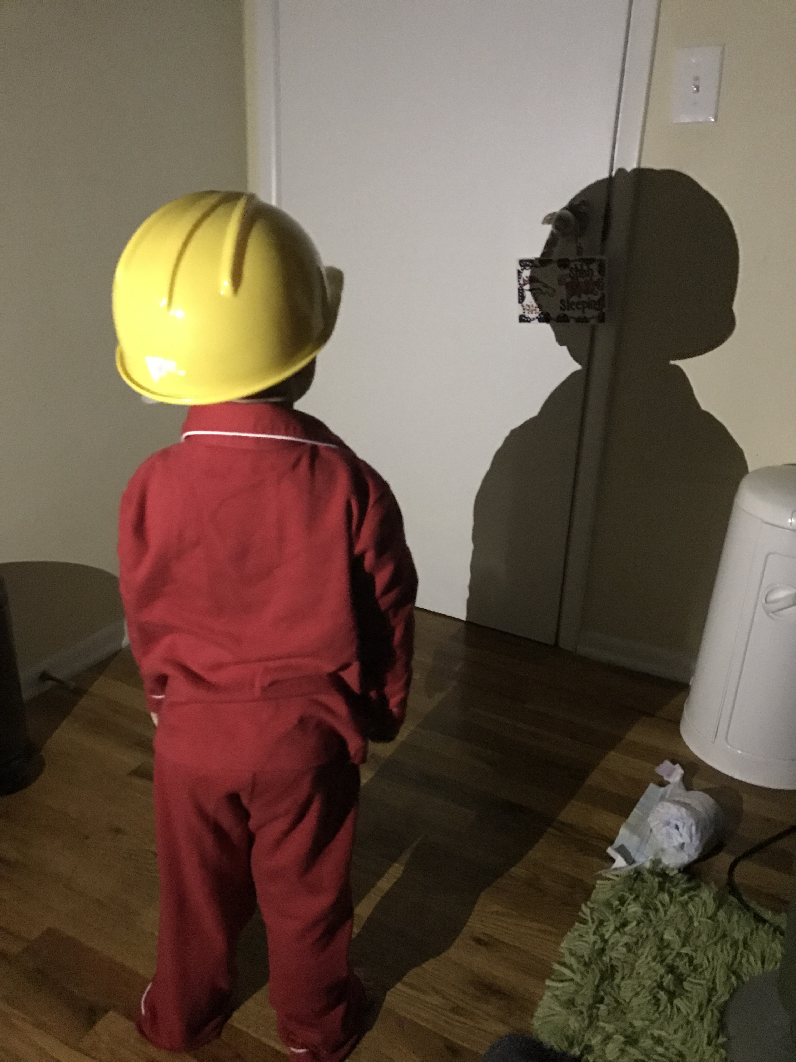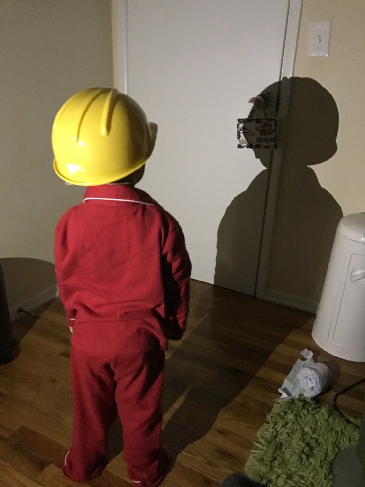 Our bedtime routine now consists of playing with our shadows on the wall. Once he discovered shadows, there was no going back. We play, dance, and laugh with our shadows every night. Obviously we know how to have a good time. ๐