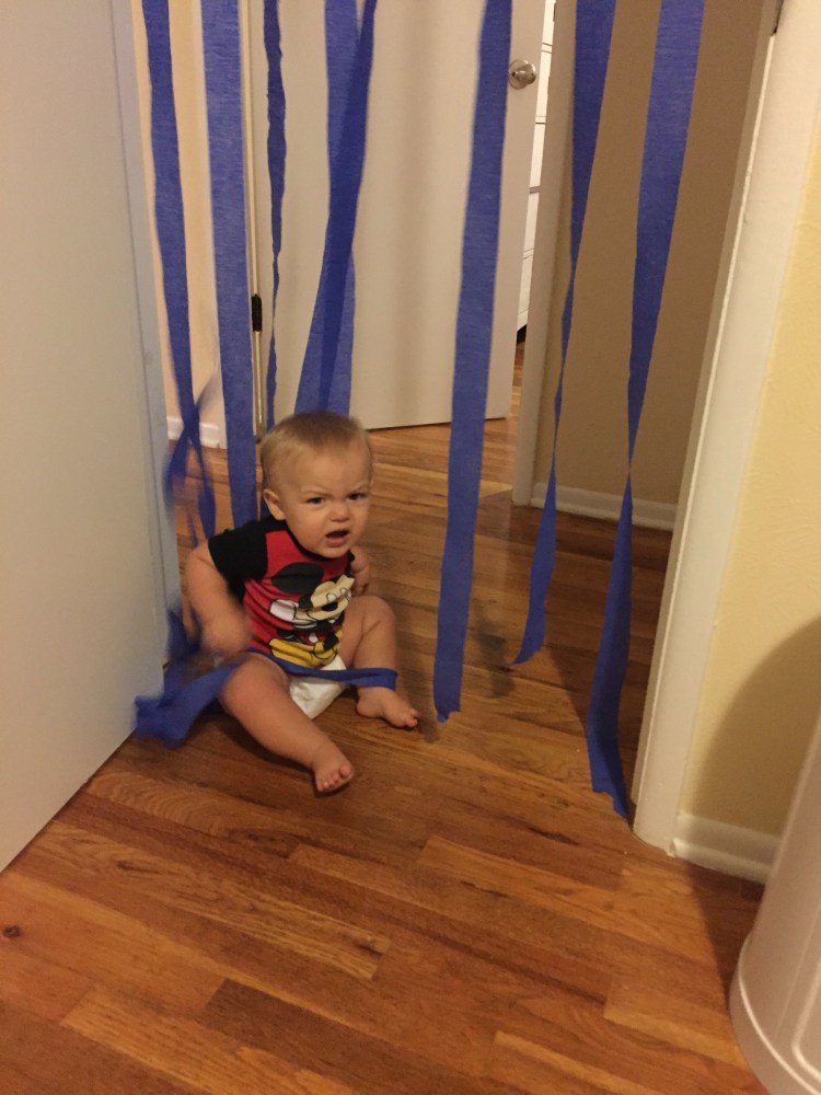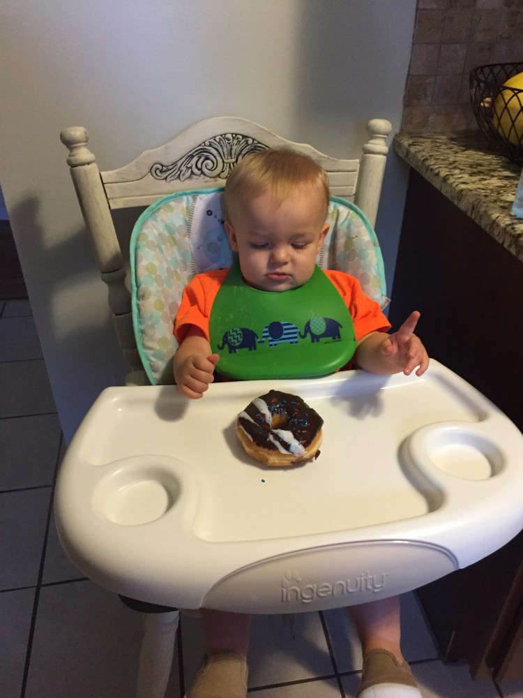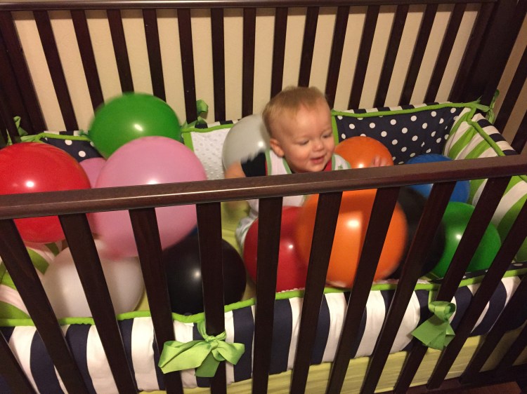 Donut for breakfast, streamers everywhere, and balloons in the crib. He liked one out of three. Not too shabby.