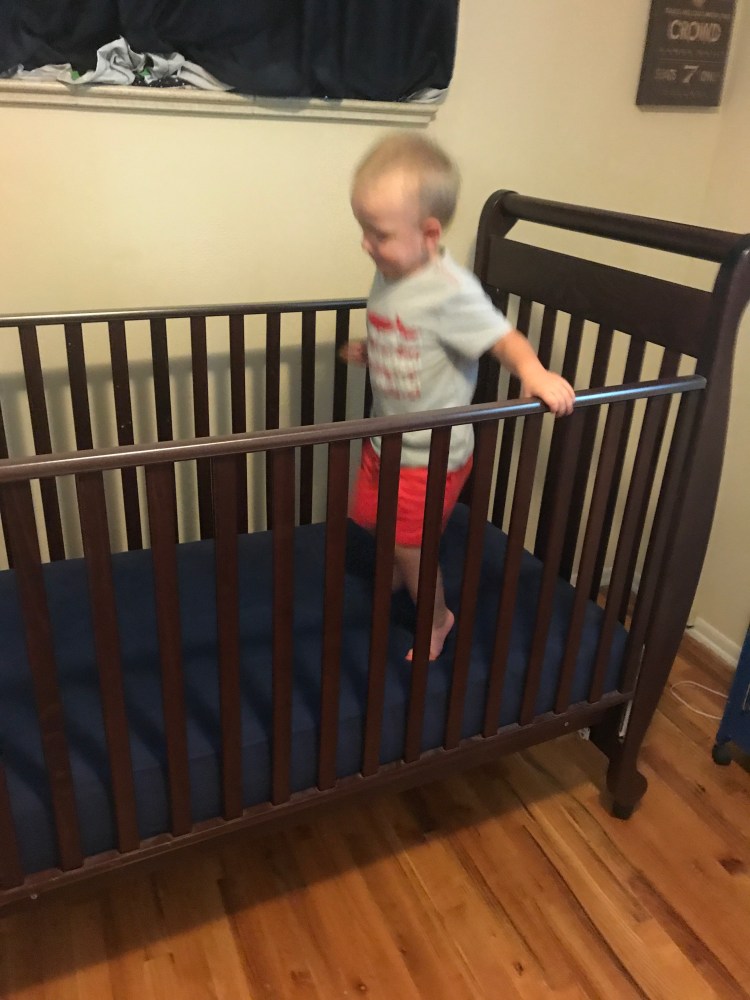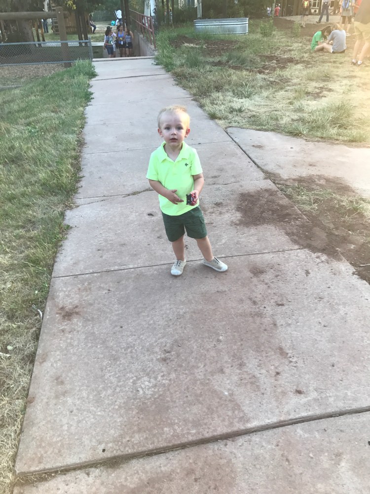 He is LOVING preschool. He tells me all about circle time, the colors and shapes they are learning about, and how Mrs. Paulette says to ‘zip your mouths.’ He also explained that in circle time, you can sit criss cross applesauce or legs out straight. He sits legs out straight because he tried criss cross applesauce and he just can’t do it. (This is all him reporting this.) Preschool is only 9-12 so he stays for extended day until 3 since I am at work. Let’s just say that we are still getting used to the whole no nap thing on those days. We are definitely nowhere near dropping a nap by evidence of these past 2 weeks. Little Mr. Extrovert NEEDS his rest to recharge.