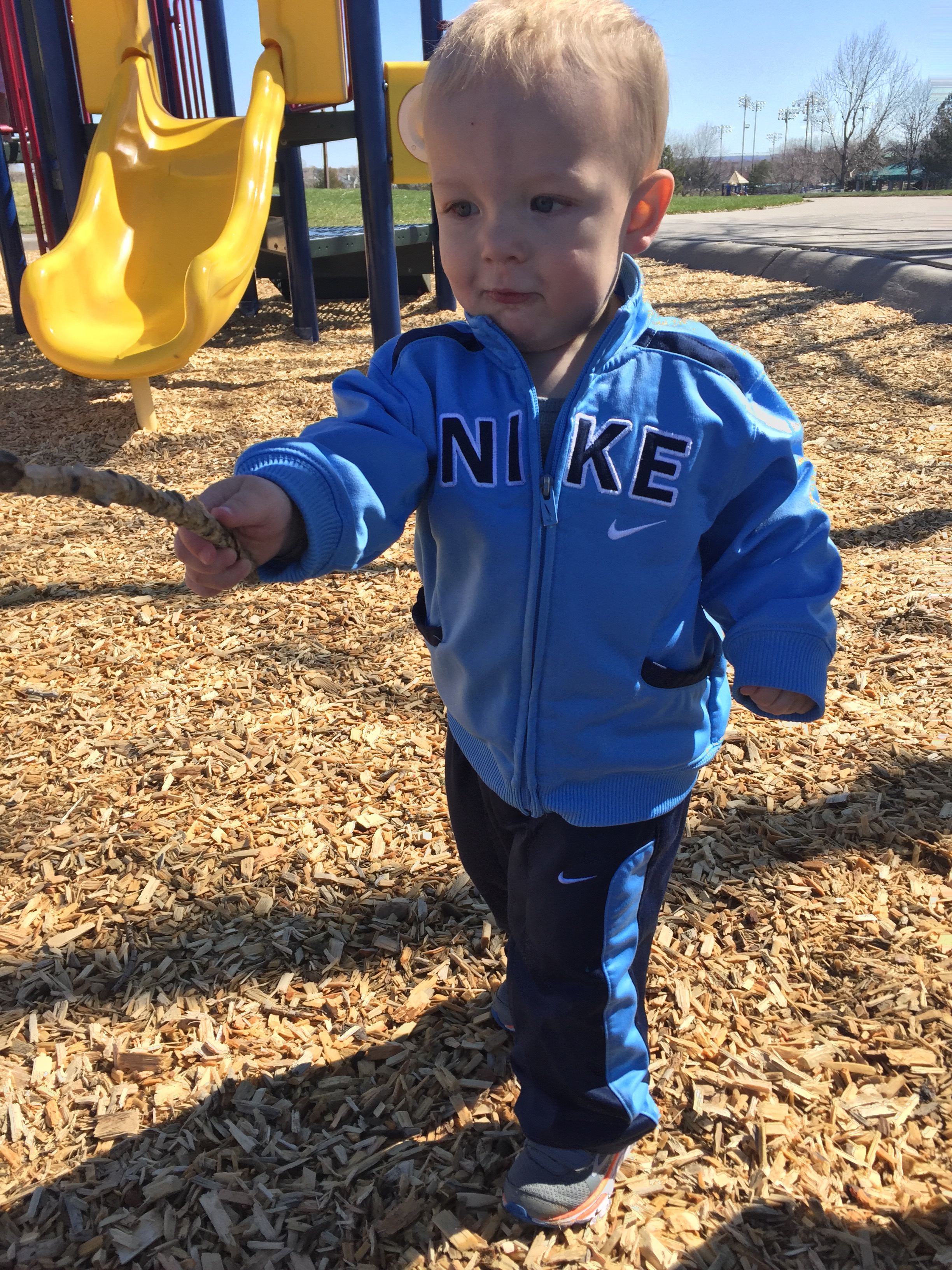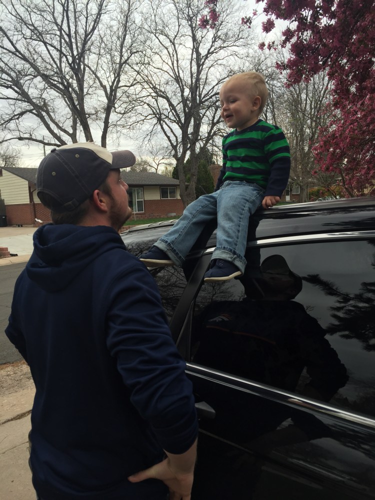 This is their silly game they play every time Nick puts Caleb in the car. He sets him up there and then pretends to let him slide down and Nick catches him and then they both crack up. Two peas in a pod!