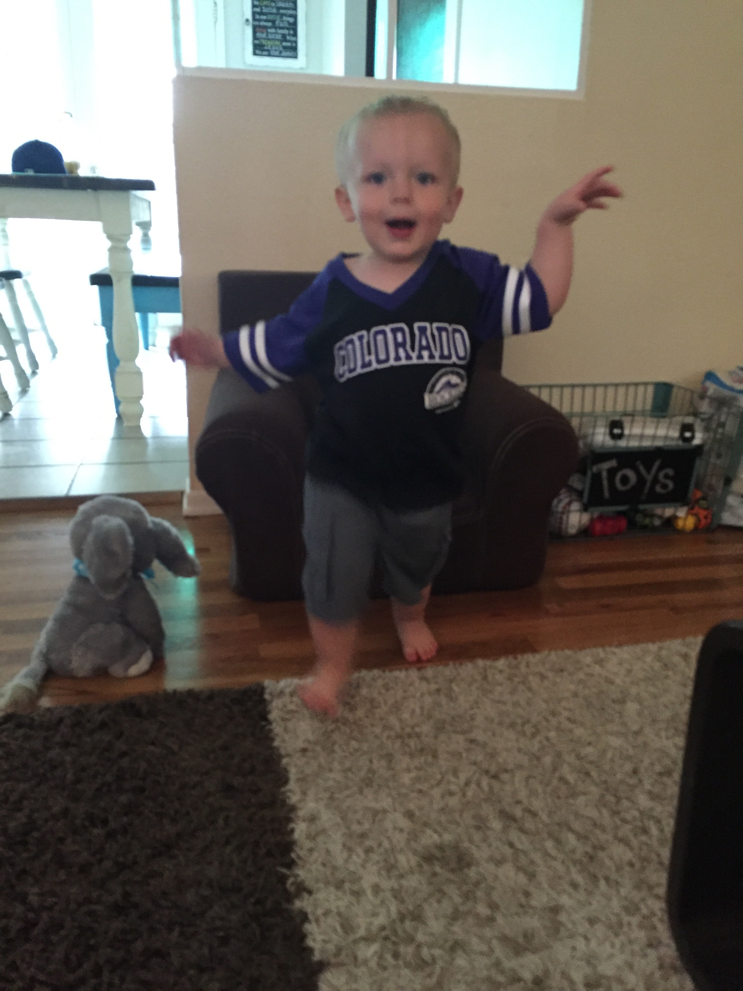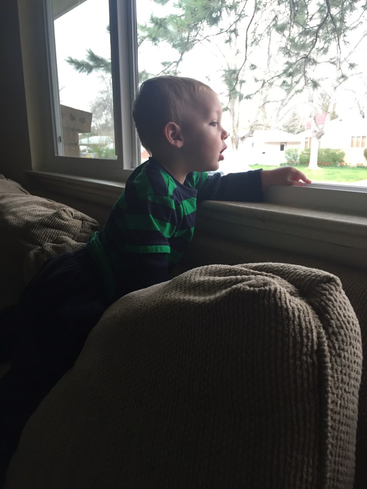 And look who woke up early at 1:30 because of a loud machine outside. First thing he said? ‘DADA!’ (And this is him staring at Nick’s picture on his shelf. Pretty sure he wins Nick’s biggest fan award.)