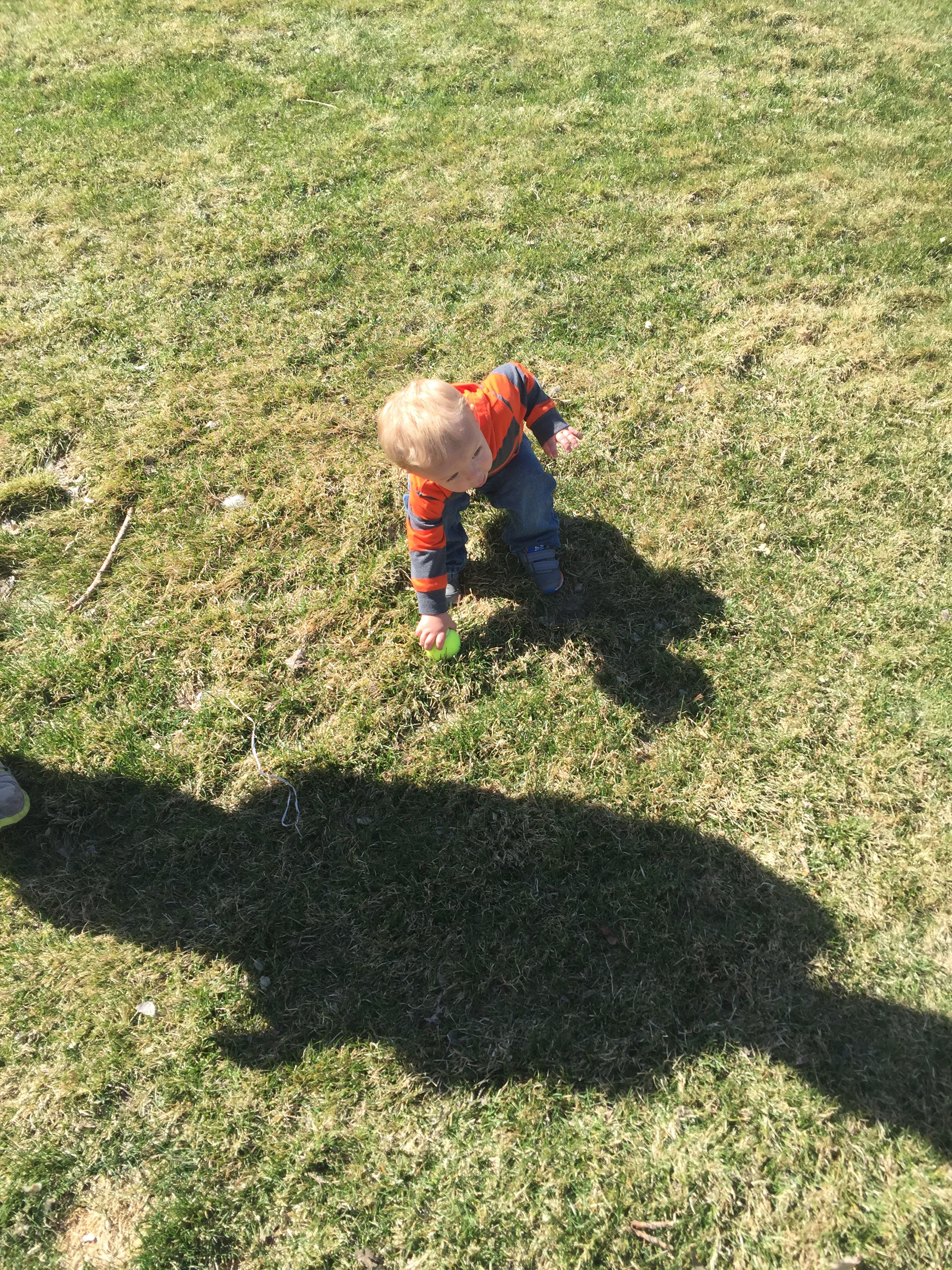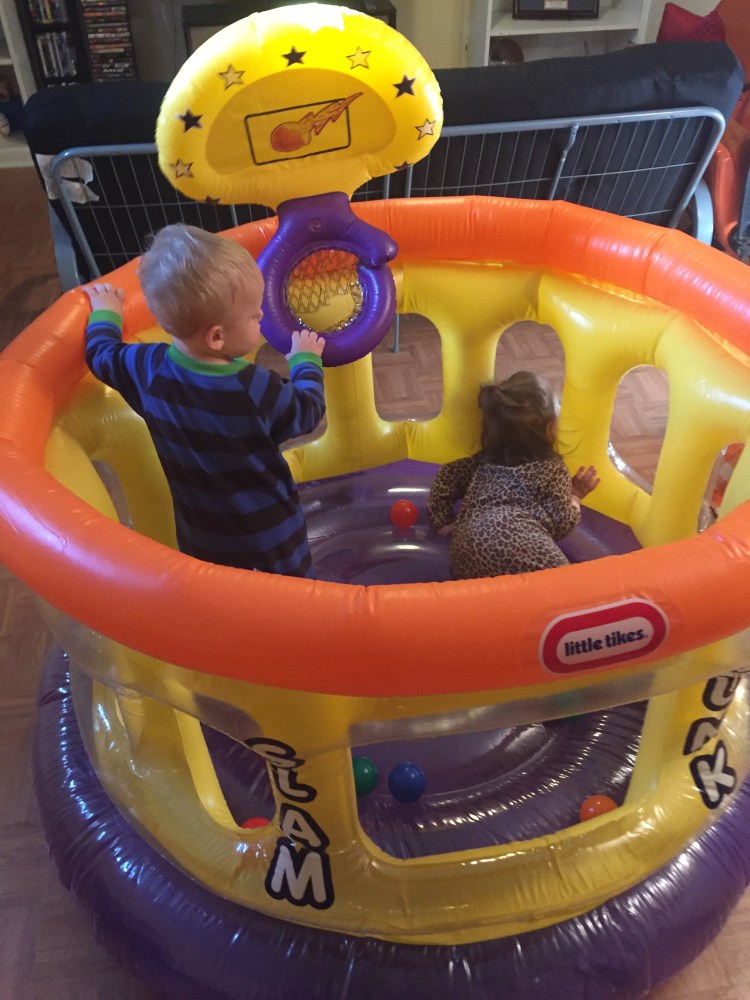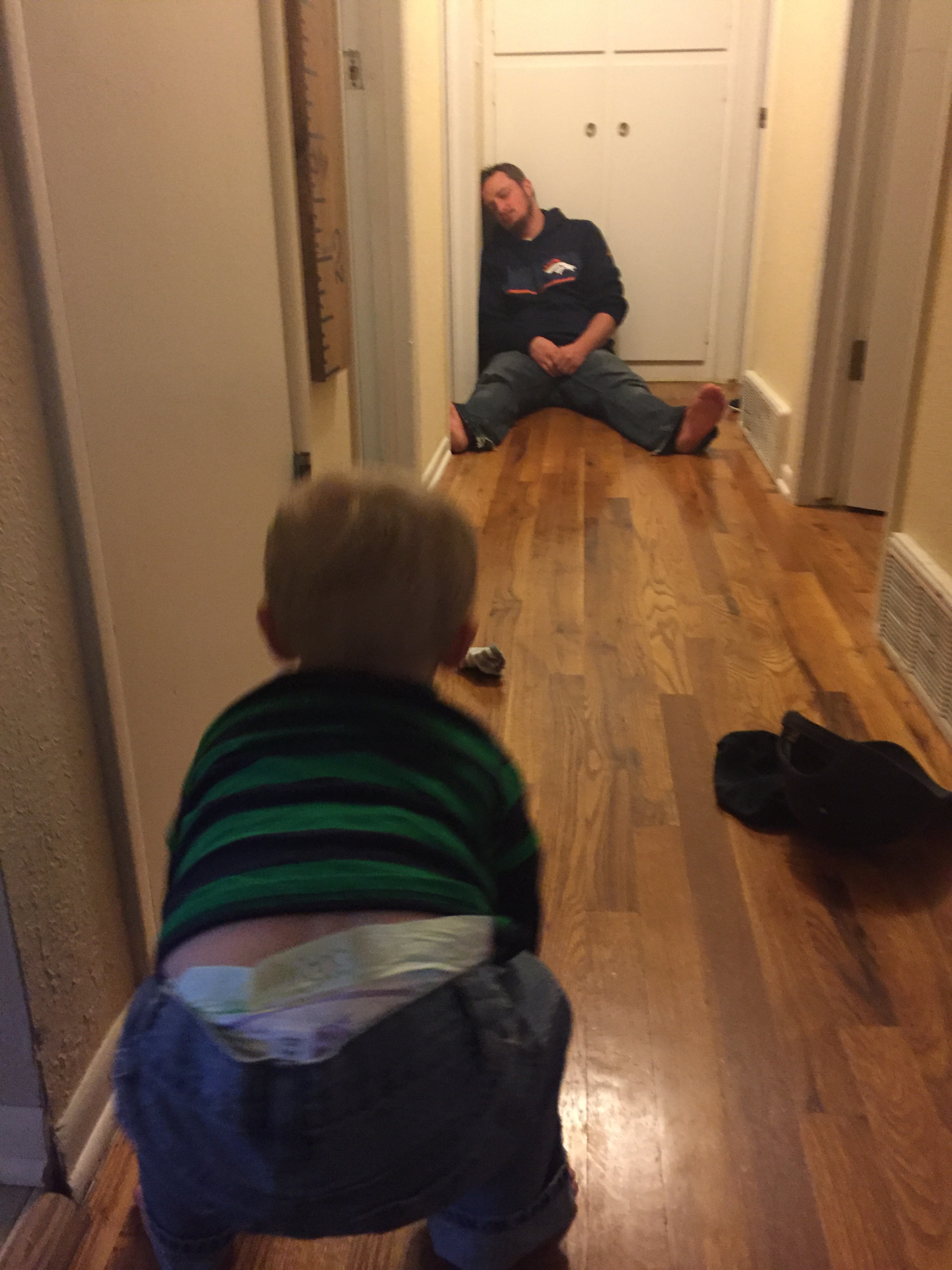 We played in the hallway a little bit before bed. He loves to have us on each end and run back and forth between us.. And especially loves when we yell & scare him when he gets to us. LOTS OF LAUGHING.
