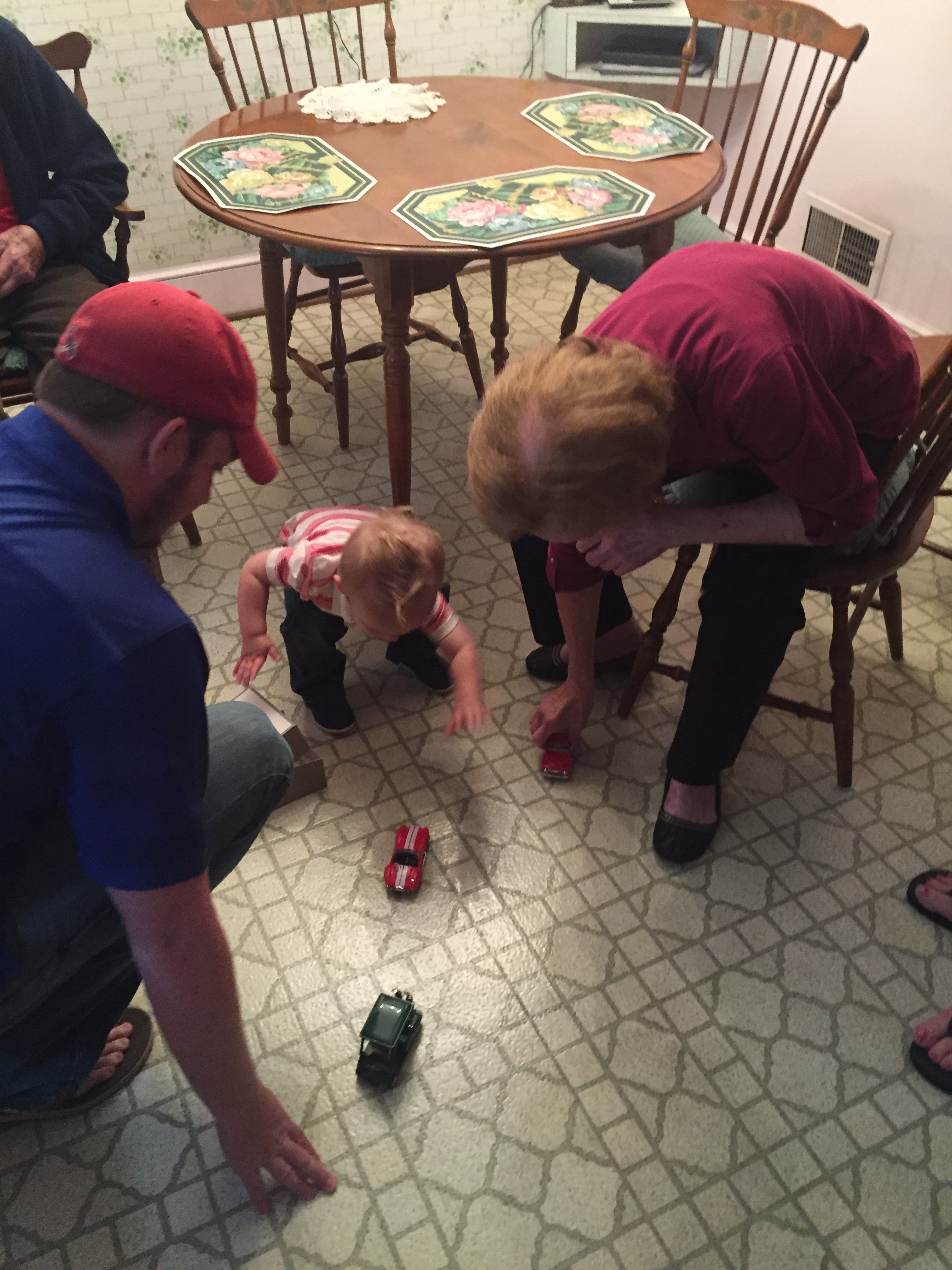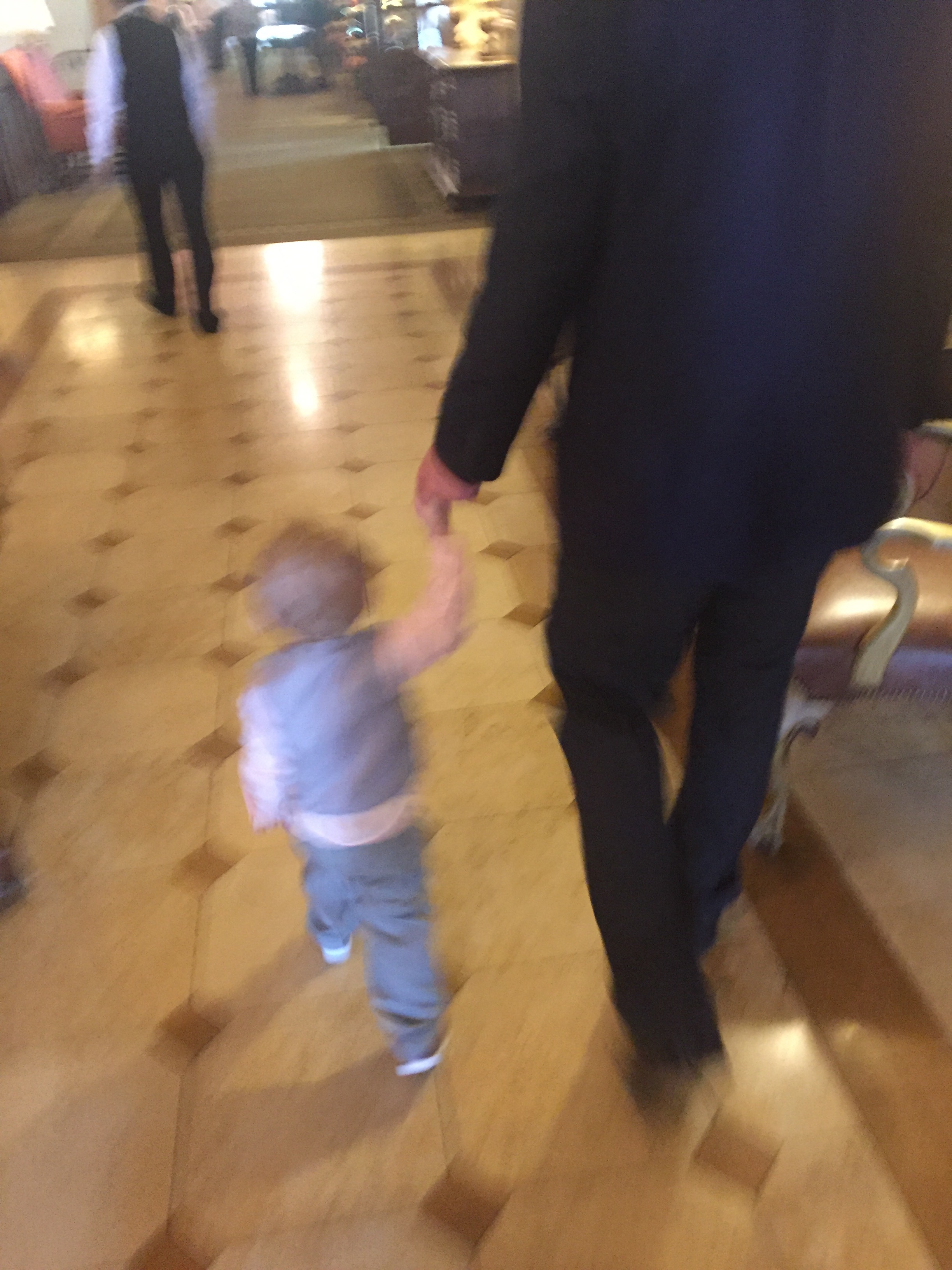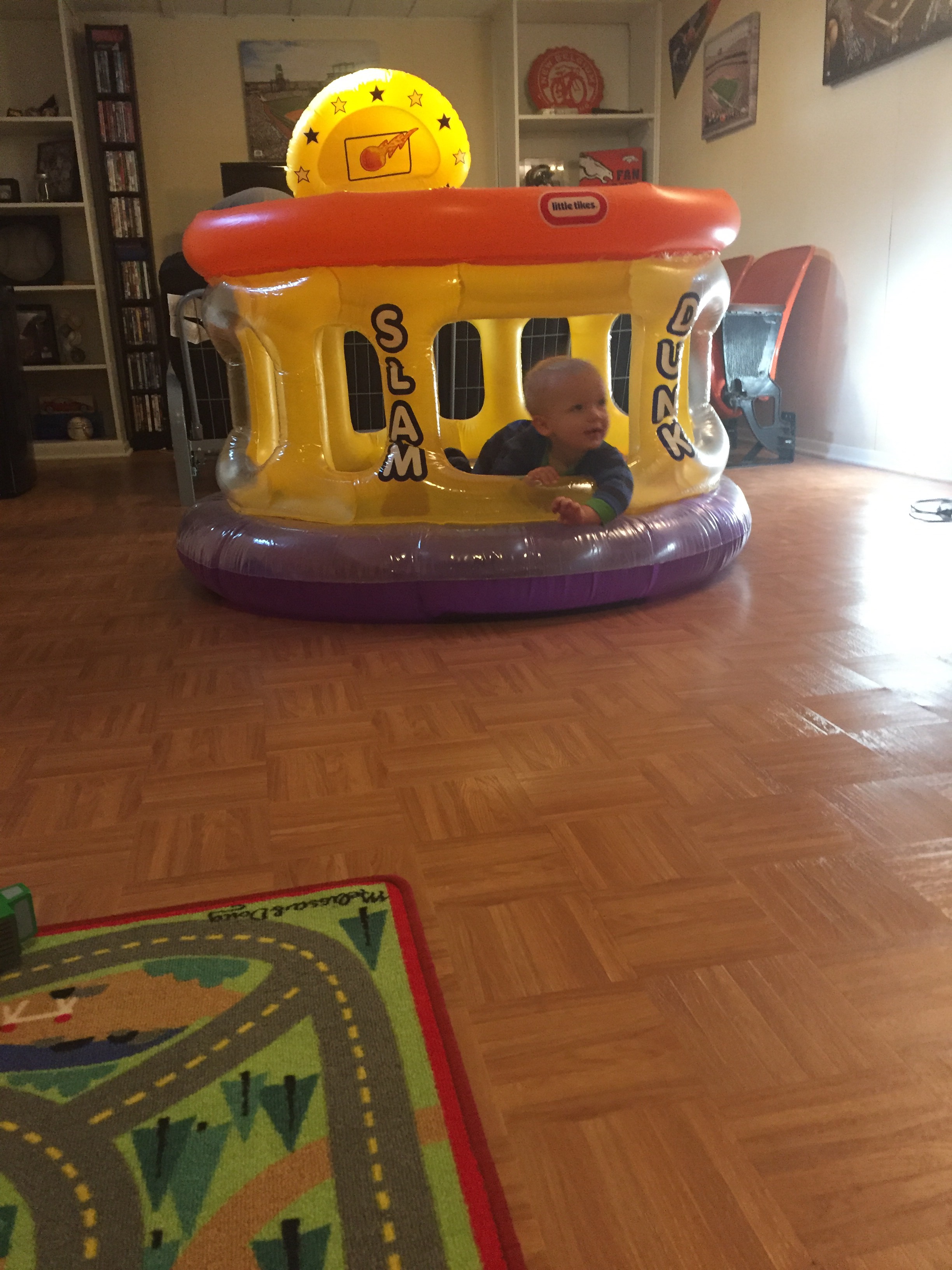 We played in the hallway a little bit before bed. He loves to have us on each end and run back and forth between us.. And especially loves when we yell & scare him when he gets to us. LOTS OF LAUGHING.