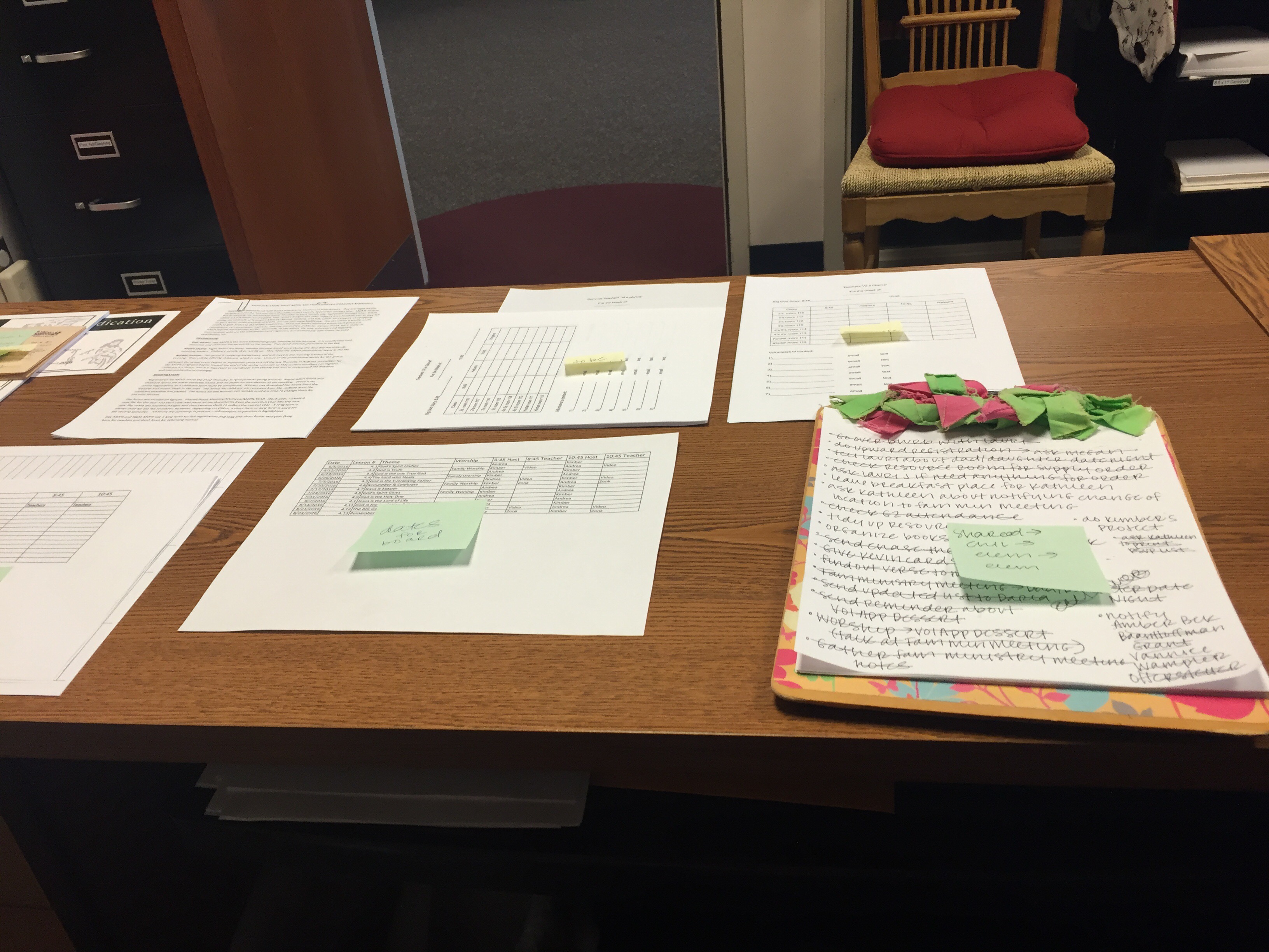 Hello desk. (It is now 8 am, FYI.) The clipboard on the right is from when I did children’s ministry in Fort Worth with the girls that turned into some of my very best friends. When one of the girls left staff, she made these fun clipboards for all the rest of us and wrote us a sweet note on the back. I especially love that I get to use that clipboard again in children’s ministry in Colorado. #CMforever