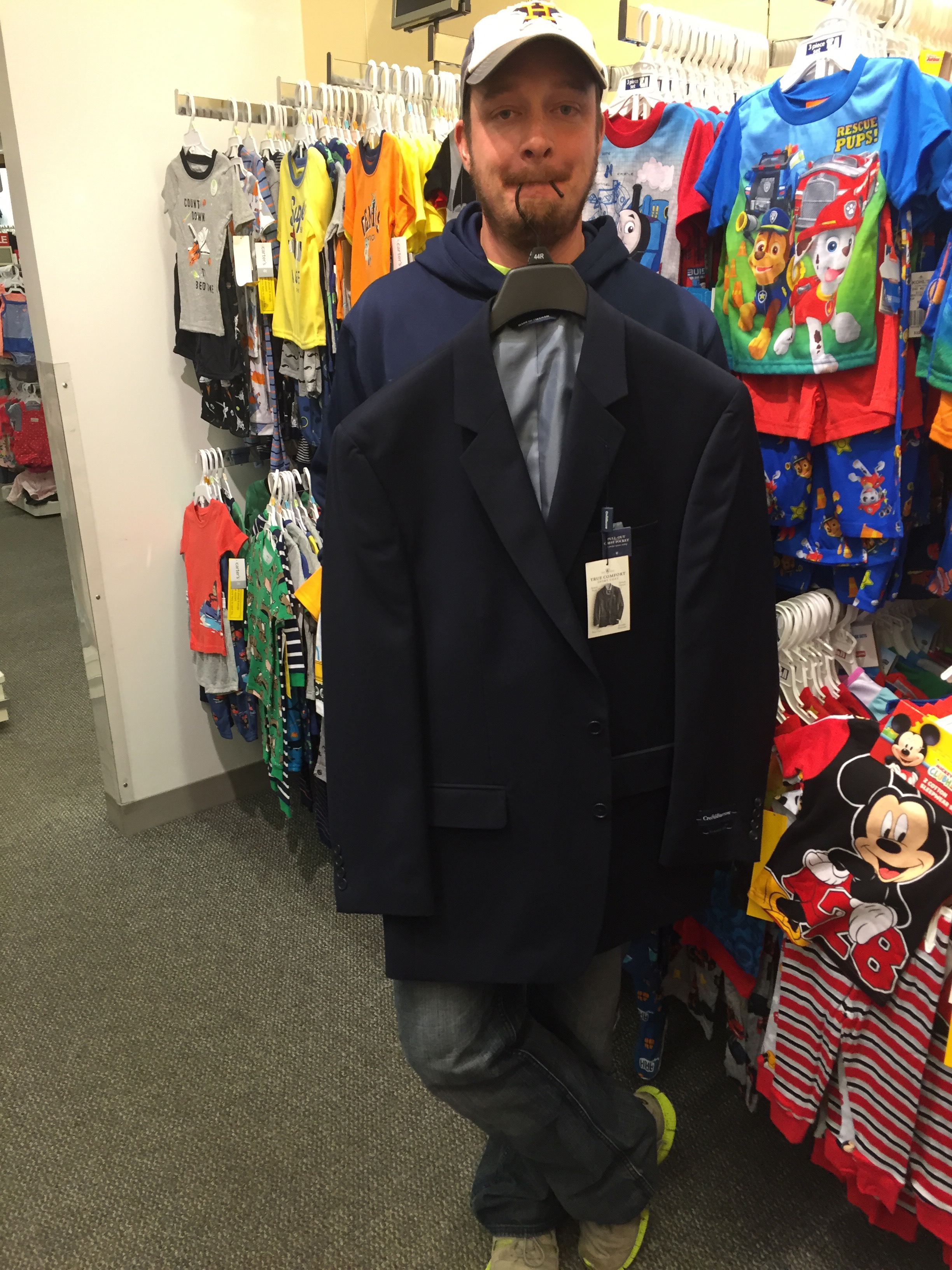 Nick was in dire need of a new sports coat. So if you know Nick even a tiny bit, you know how pumped this makes him. I’m pretty sure he would have rather bought hats with that money. π