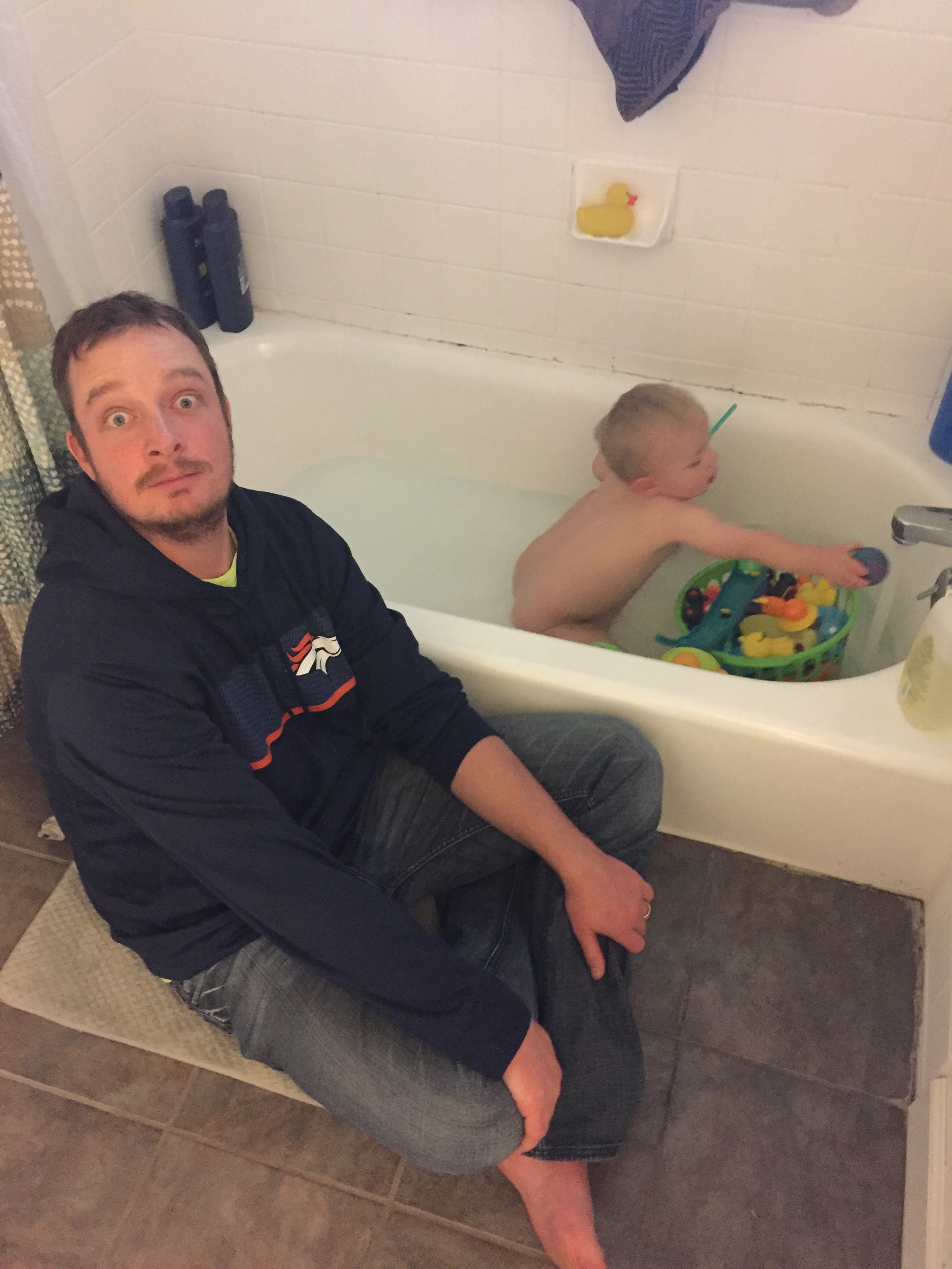 Bath time!!! Nick does Caleb’s bath every night because he is a saint. And they have an absolute blast together playing and splashing and soaking the entire bathroom.